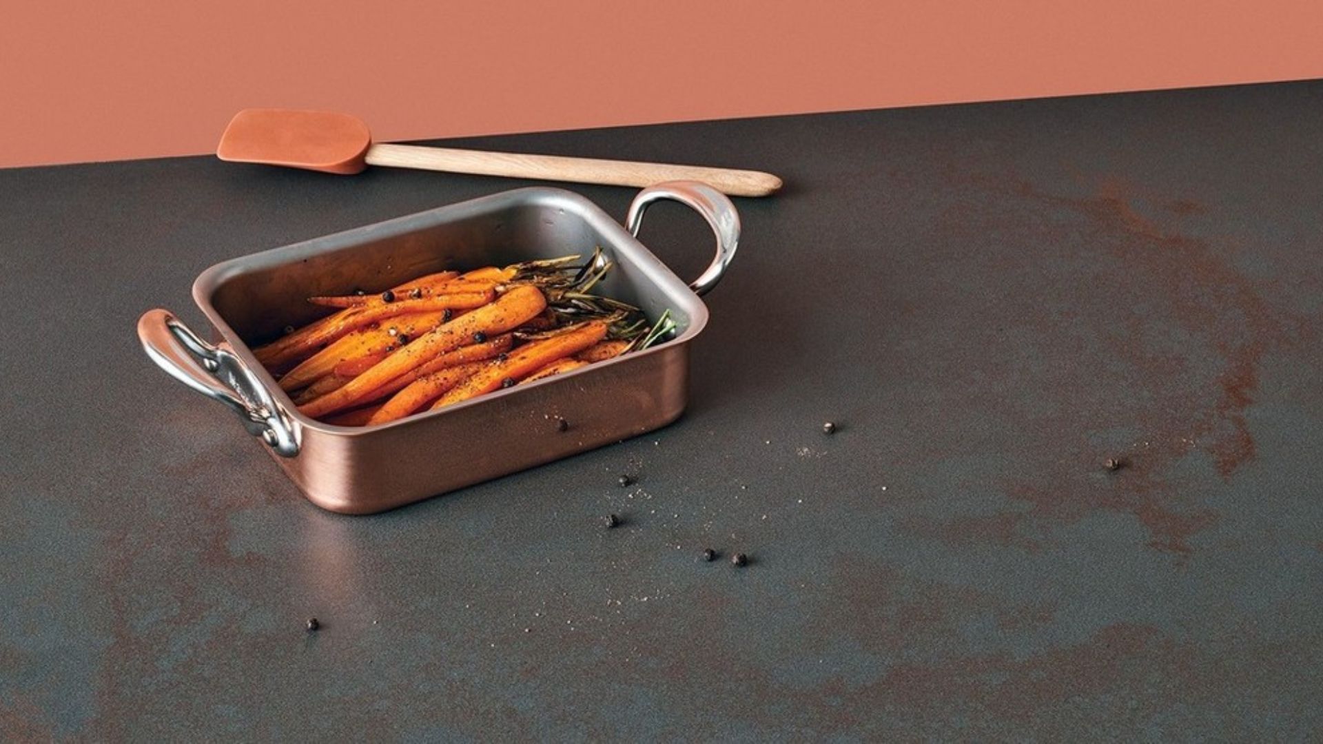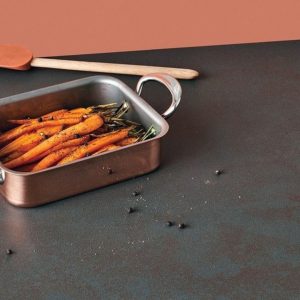A remarkable inky black base that is dramatic, veiled by a rust-like metallic effect that captures the movement of a beautifully oxidised surface with shadowy darks.