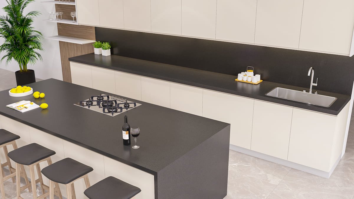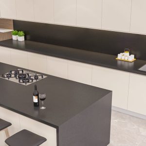 Fugen Dark Grey adds sophistication and elegance to any space. The Fugen Dark Grey’s distinctive and vibrant appearance can make any furniture look stunning while also highlighting other aspects of the space. This quartz worktop can be used to set the main theme for living spaces such as kitchens, hallways, and research rooms.
