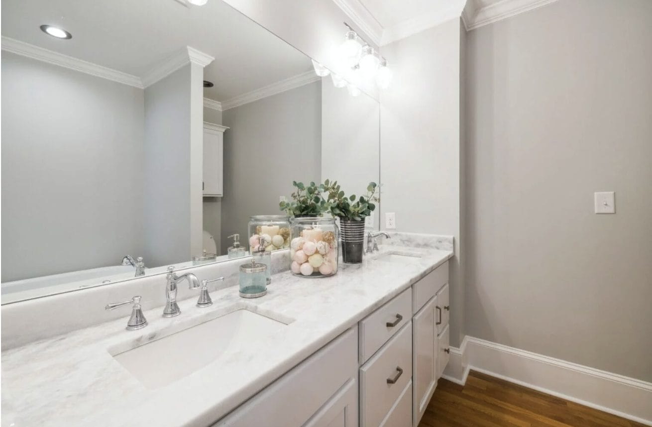 This material offers the best of both worlds, combining the appearance of marble with the durability of granite. Quartzite is an ideal choice for high-traffic bathrooms due to its high resistance to scratches, heat, and etching.